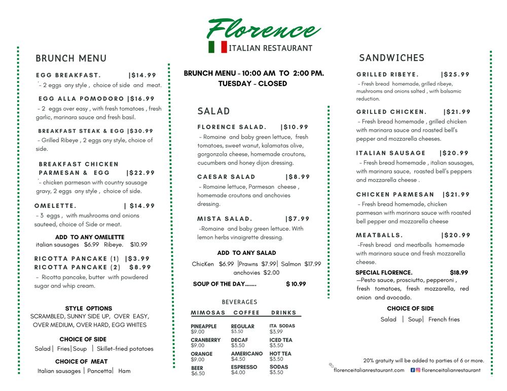 At Florence Italian Restaurant, located in Martinez, CA, you can indulge in a variety of authentic Italian dishes. From their exquisite pizzas like Alfredo artichoke and Florence all meat, to delectable appetizers such as Bruschetta and Carpaccio, there's something for everyone to enjoy. Their pastas, like Capellini alla Cecca and Fettuccine Genovese, showcase the rich flavors of Italy. Customers rave about the fantastic carbonara and the consistent quality of the food. The European service adds a touch of charm, making you feel like you've stepped into Italia itself. Whether you're sipping on a good Sangiovese or enjoying a creamy Chicken alla Parmigiana, Florence Italian Restaurant is a hidden gem waiting to be discovered. Don't miss out on this delightful dining experience.